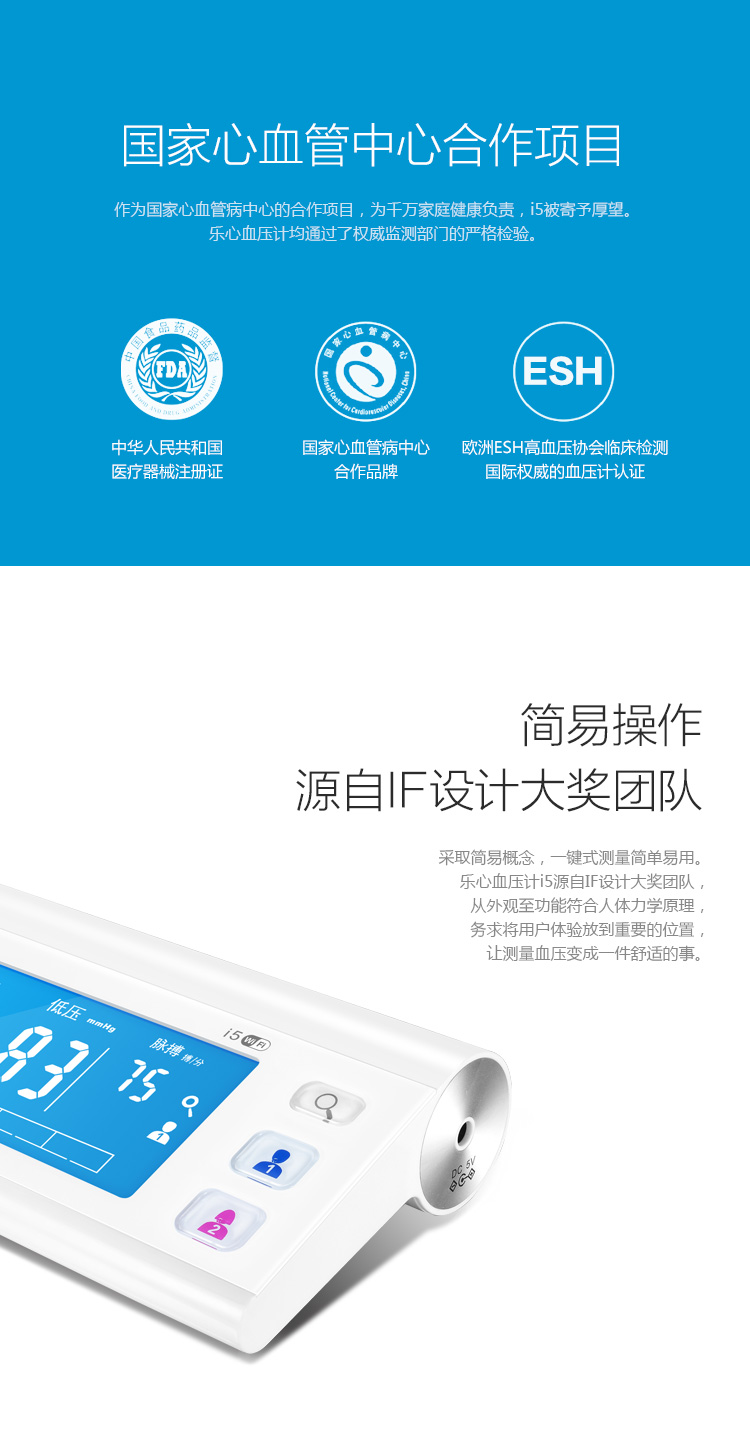 商品名称:乐心(LIFESENSE)【微信版血压计I5s】远程高档血压计 家用智能血压计上臂式 WIFI版