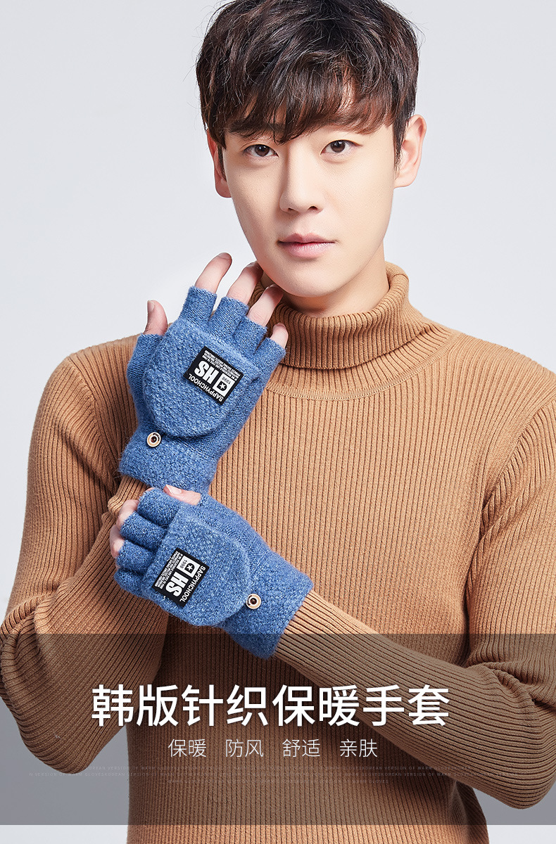 商品名称:撞色半指男生针织冬季保暖手套 公司送员工圣诞礼物