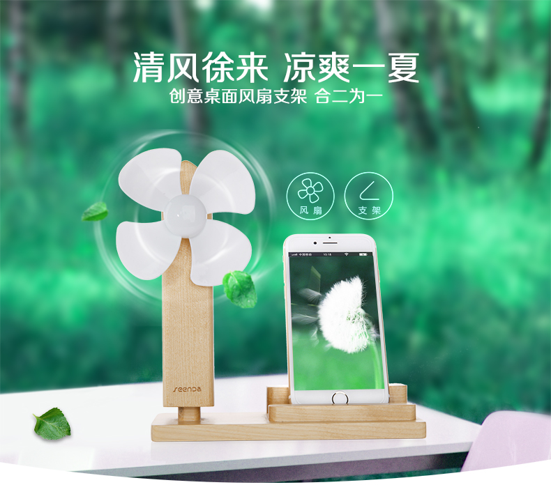 商品名称:seenda创意原木桌面小风扇平板支架 手机座 USB风扇