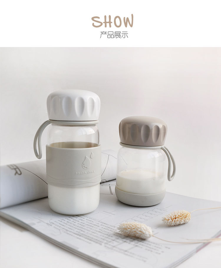 原创专利点心玻璃杯400ML 创意便携可爱隔热随手杯 定制小礼品