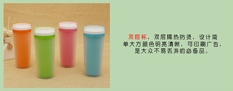 商品名称:创意磨砂双层隔热杯 带提手塑料广告杯 防漏水杯