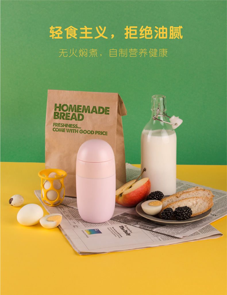 商品名称:文艺小清新早餐杯鸡蛋杯304不锈钢超长保温便携计时闹钟焖粥杯 房地产抽奖奖品