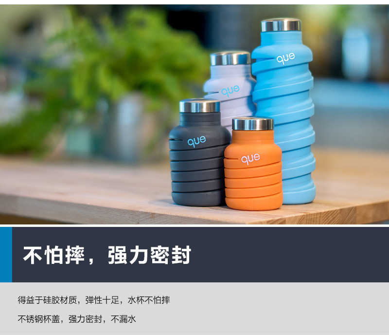 美国Que Bottle摔不碎时尚环保水杯 可折叠伸缩硅胶运动旅行便携 户外实用精美礼品
