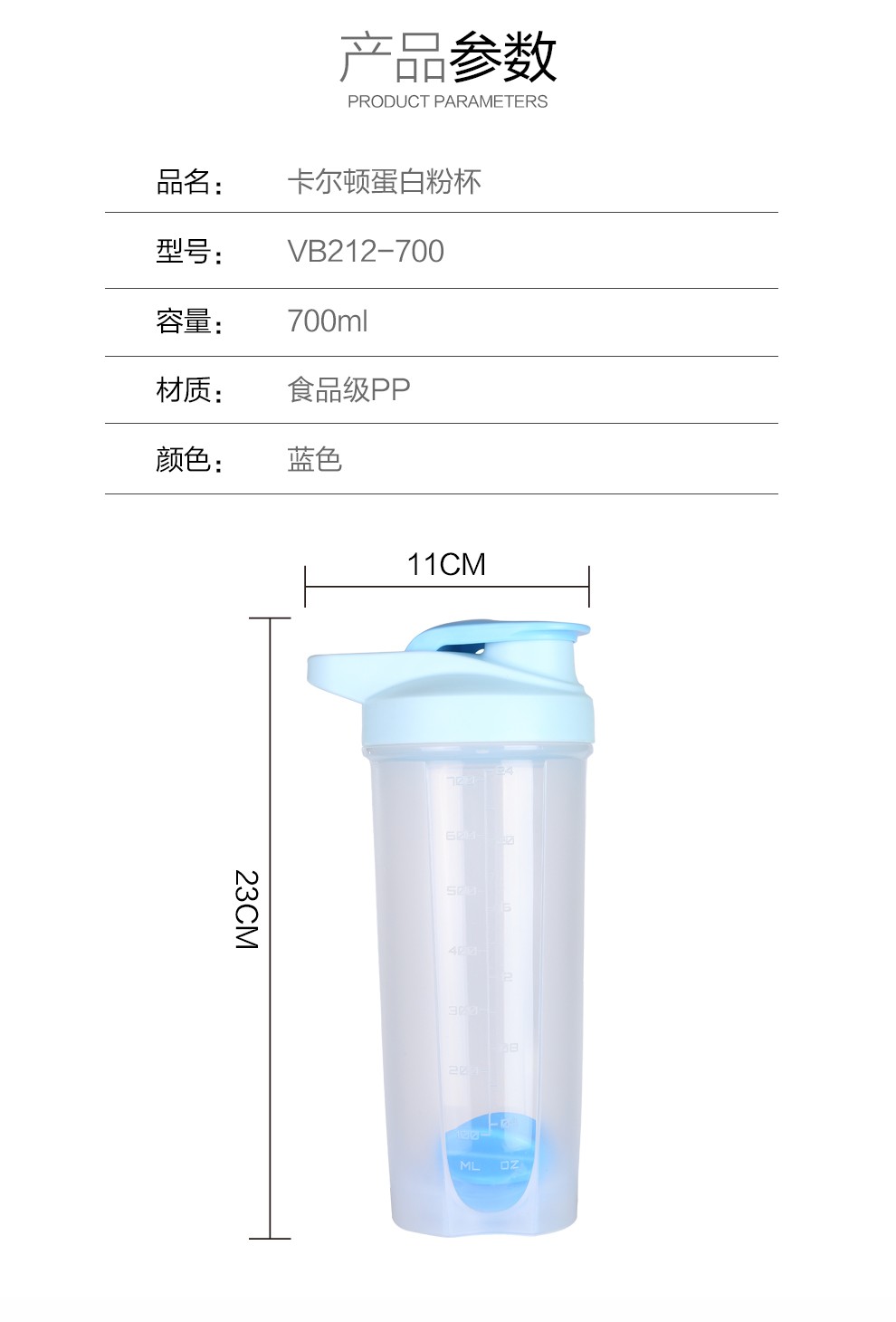 菲驰(VENES)卡尔顿蛋白粉杯运动摇摇杯700ML 商场赠送的小礼品