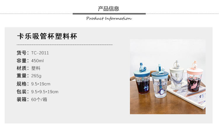 商品名称:个性海豹吸管杯 清新可爱塑料杯450ML 礼品杯定制