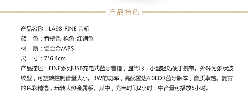 商品名称:法国乐上(LEXON)FINE金属复古音箱 高品质蓝牙音箱 实用礼品