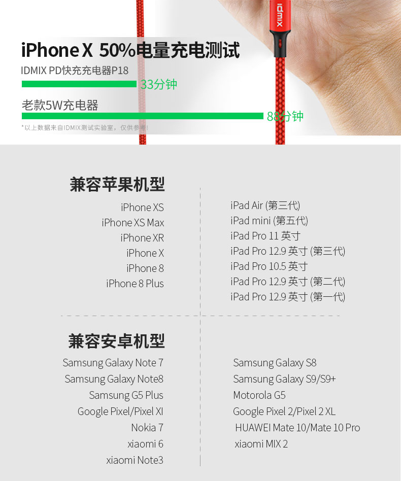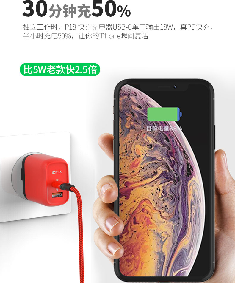 商品名称:IDMIX(大麦) 苹果PD充电器 18W充电插头 QC+PD双口快充 实用礼品定制 家居礼品必备