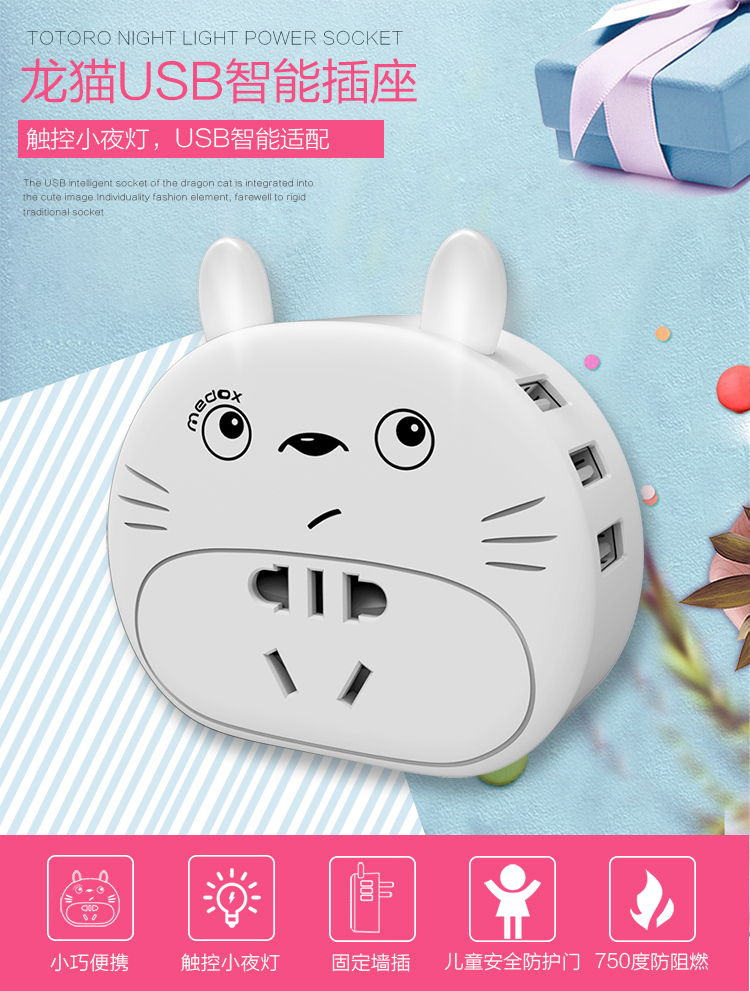 商品名称:创意带小夜灯插座转换器插头 多功能USB电源插线板 小巧便携卡通墙插 家居小礼品