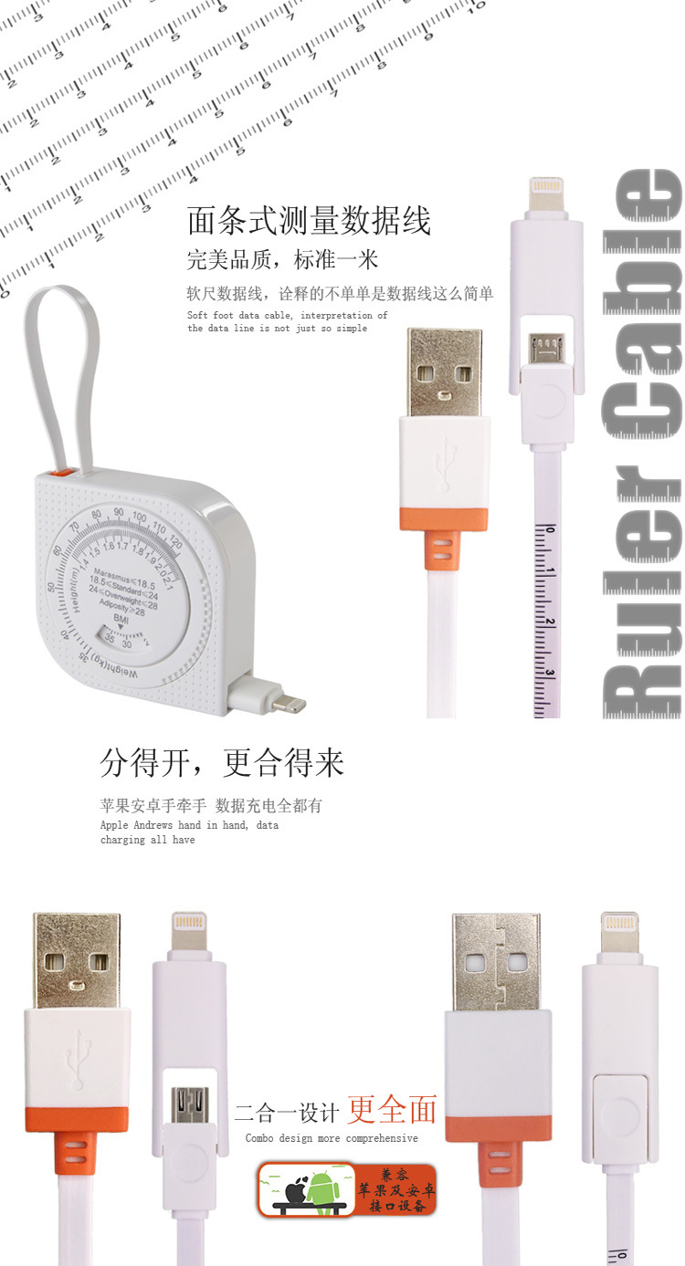 商品名称:BMI个人健康指数多功能创意卷尺数据线 二合一苹果安卓数据线礼品