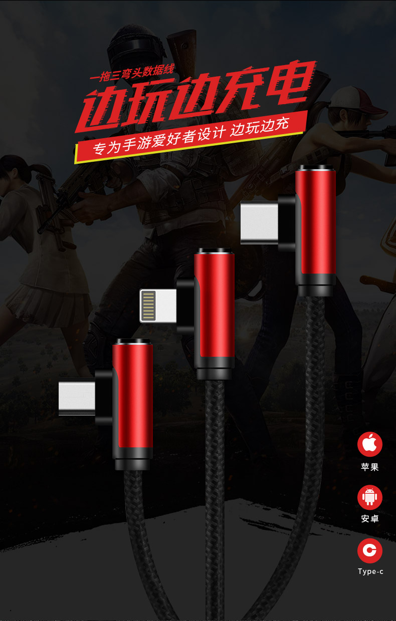 商品名称:幻响(i-mu)L型弯头一拖三数据线 三合一苹果iphone安卓Type-C充电线 房地产活动礼品