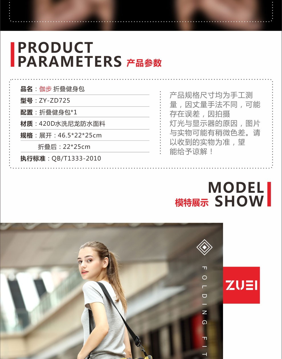 商品名称:ZUEI 折叠健身包 大容量方便携带旅游单肩包 旅游礼品定制