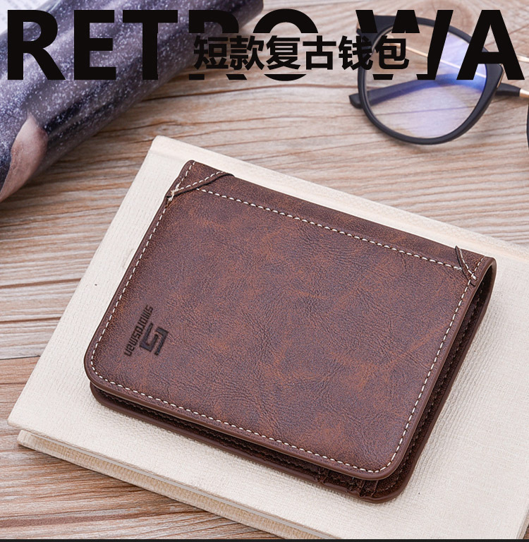 复古三折男士短款钱包简约男式大容量软面皮钱夹 银行送客户什么礼品