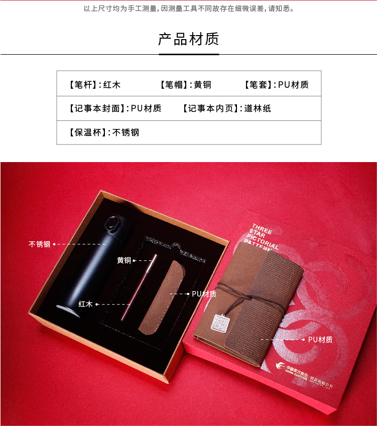 商品名称:【名仕】商务伴手礼四件套礼盒 保温杯笔记本红木笔 公司搞活动礼品奖品