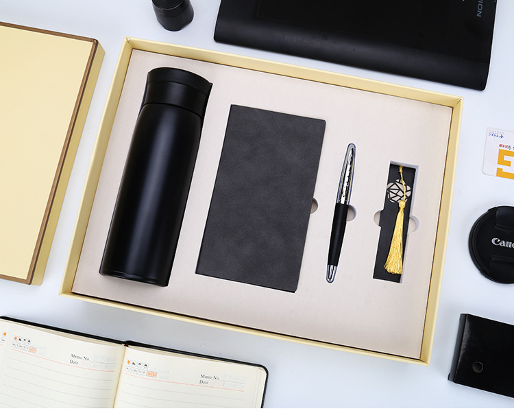 商品名称:创意商务礼品套装 保温杯+书签+笔记本+签字笔四件套礼盒 礼品定制