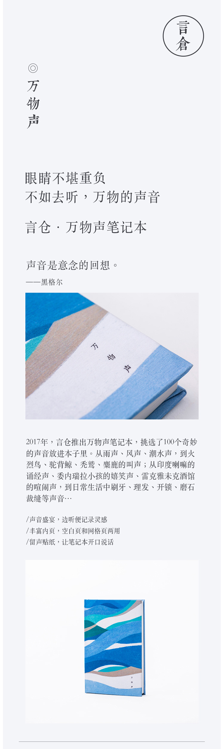 商品名称:言仓 万物声笔记本 记录100种声音 创意扫码记事本 商务礼品定制