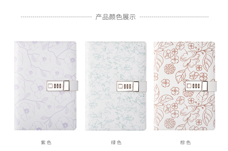 商品名称:花花系列线装密码记事本 A5皮质手账本 创意商务办公礼品