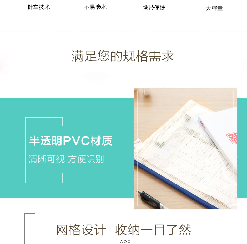 商品名称:得力(deli)基本网格款文件袋 拉链文件袋 定制广告小礼品1元内