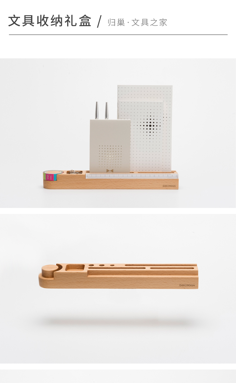 【归巢】文具收纳礼盒 创意桌面文具收纳套装 原木收纳座笔记本便签本胶带铅笔回形针设计师手尺