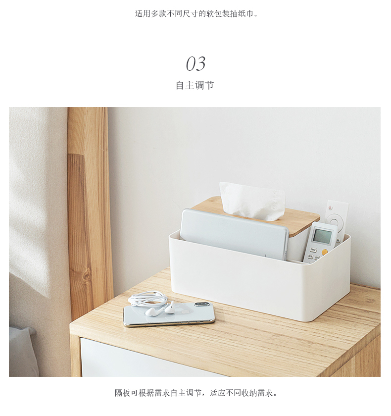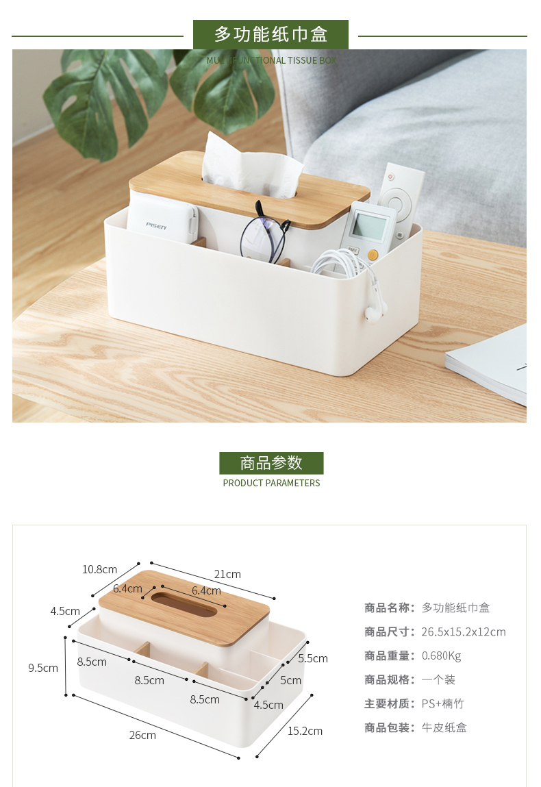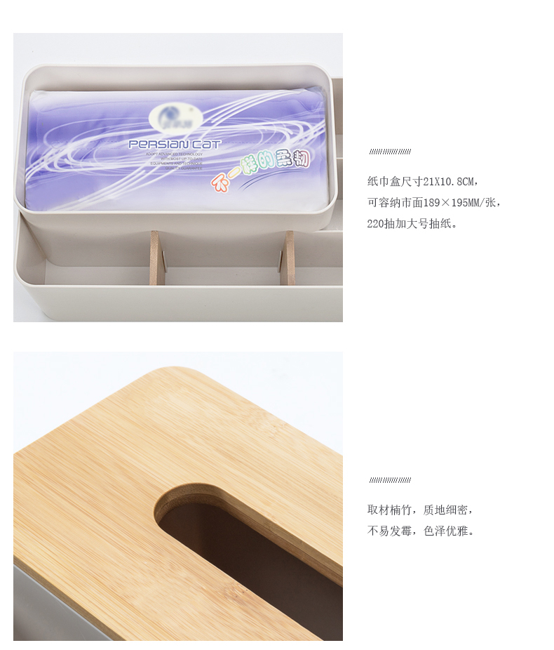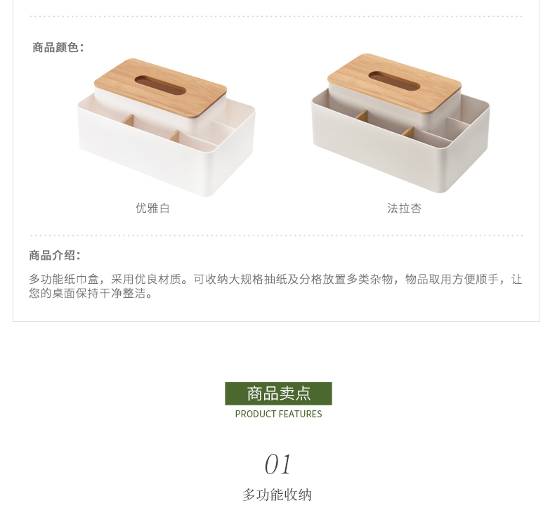 商品名称:纳川楠竹分格桌面收纳盒 纸巾盒--优雅白(A0297) 促销活动赠品方案
