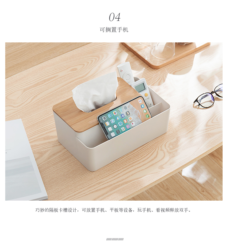 纳川楠竹分格桌面收纳盒 纸巾盒--优雅白(A0297) 促销活动赠品方案