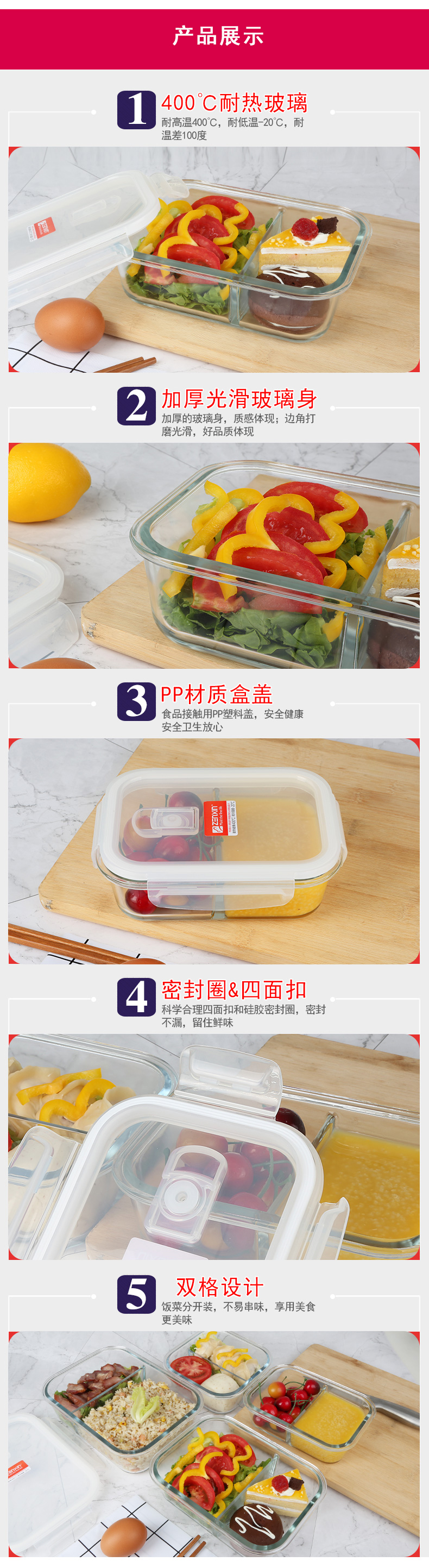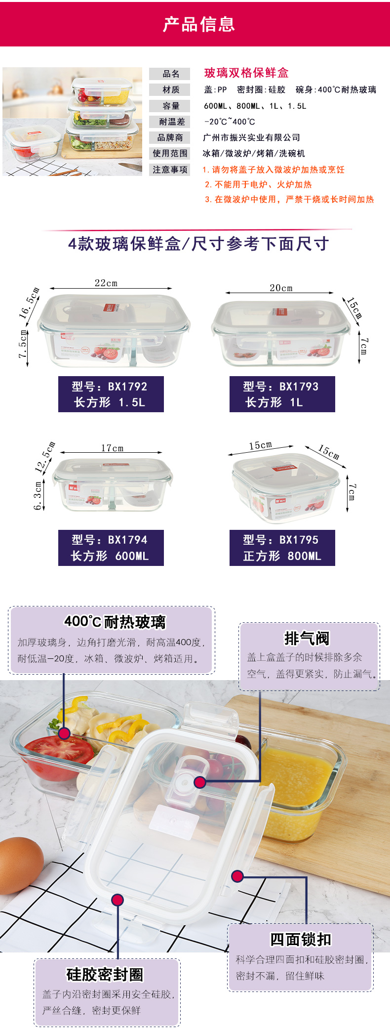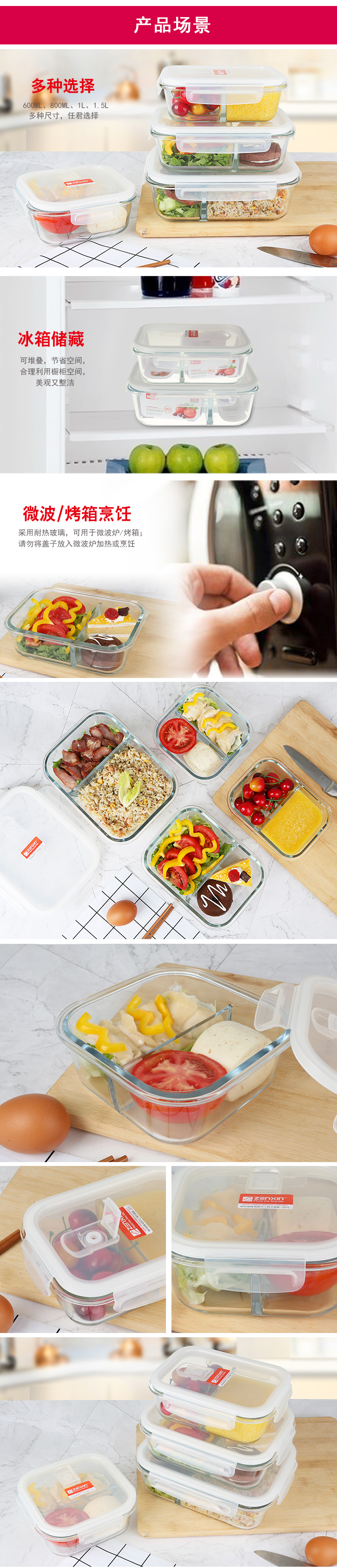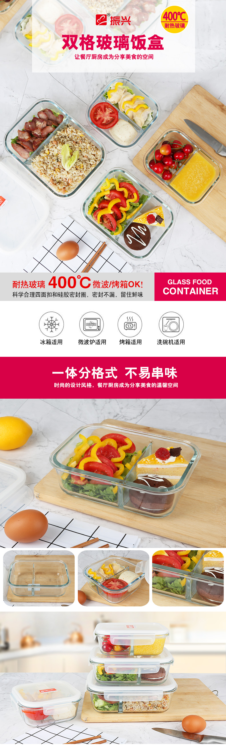 商品名称:振兴双格玻璃保鲜盒 微波炉加热饭盒800ml(BX1795) 员工活动有哪些小礼品